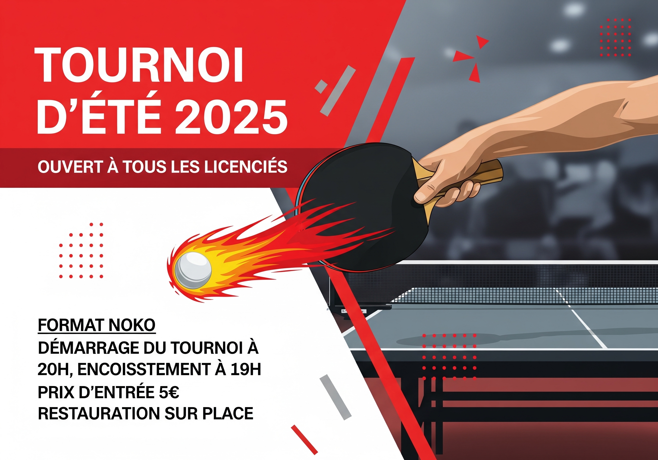 L’été arrive et avec lui, l’envie de se retrouver autour des tables pour des moments de sport et de convivialité ! Nous sommes ravis de vous annoncer le lancement de notre tournoi d’été 2025, un événement incontournable conçu pour tous les amateurs de la petite balle blanche.